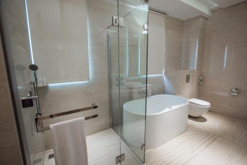 這間雙人房的特色是熱水按摩池。此雙人房空間寬敞,提供空調、茶/咖啡沖泡設備和私人衛浴(附浴缸與淋浴設施)。這間雙人房鋪設木質地板,提供平面電視(可收看有線頻道)。此住宿單位提供 1 張床。