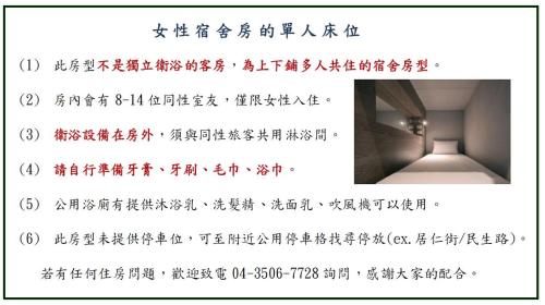 青年旅館距離台中高鐵站 15 分鐘車程,距離逢甲夜市 23 分鐘車程。