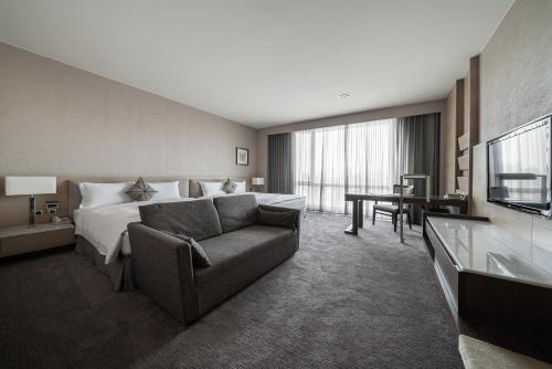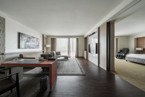 客房空間寬敞,配備空調、特大雙人床、平面衛星電視、DVD 播放機、沙發、冰箱和電熱水壺。房內附私人衛浴,設有浴缸和獨立的步入式淋浴間,並備有高級浴袍。所有客房皆有窗。