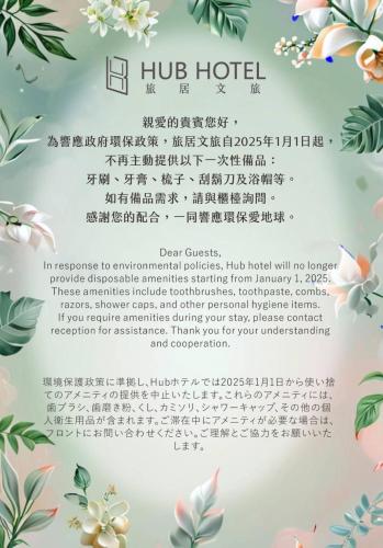 Hub Hotel - Songshan Airport Branch 位在台北,客房提供空調且設有私人衛浴,距離行天宮 500 公尺,距離台北孔廟 2.3 公里。住宿可安排私人停車位,需額外付費。住宿有 24 小時櫃檯服務、機場接送服務、共用休息室,設有 WiFi(免費)。
